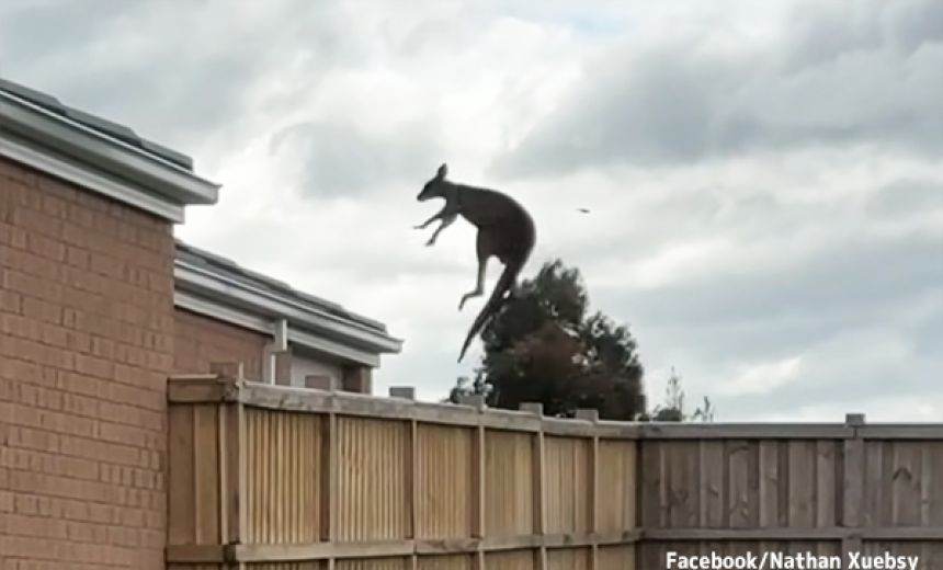 References: Kangaroo jumps fence: Landscaper captures incredible kangaroo encounter at Victorian home