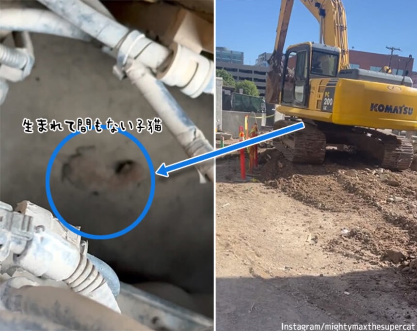 救助隊が装備を整えていたところ、車の下の方から「ミャァ~」というか細い声が聞こえてきたという。