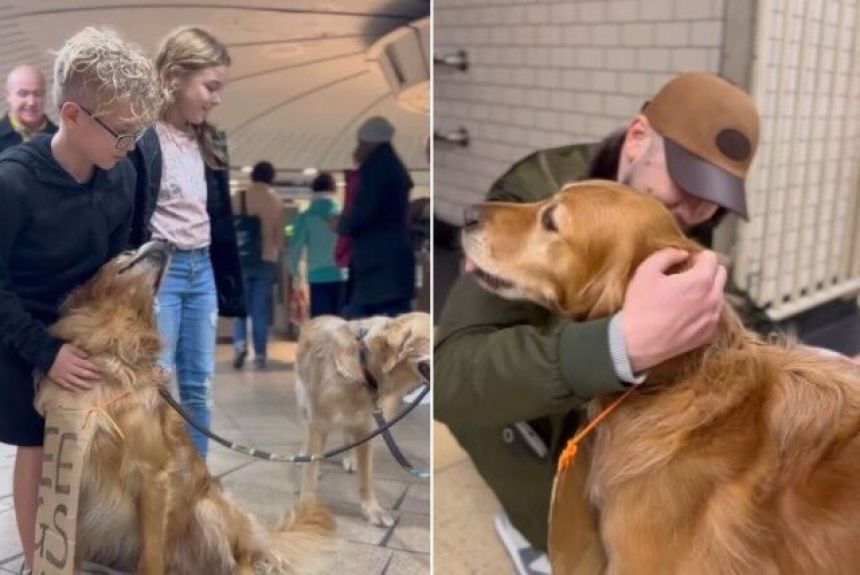 今回は、ロンドンの街中でフリーハグをしているゴールデンレトリバーたちを紹介しよう。