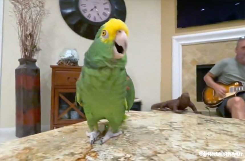 天性の音楽センスを持つインコが飼い主のギターで歌う