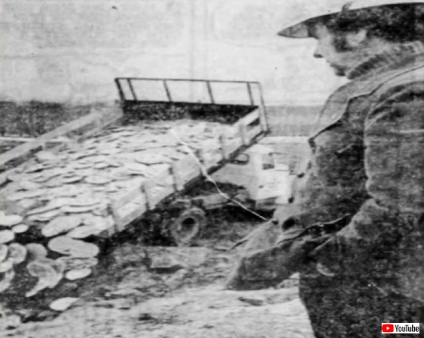 この画像を大きなサイズで見る当日は数百人がこの「葬儀」に参列し、4台のダンプカーいっぱいに積まれた冷凍ピザの山が、深さ5.5mの穴に投げ込まれる様子を見守った。