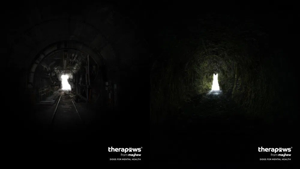 ロンドンの動物救助団体メイヒューが、10日「世界メンタルヘルス・デー」にちなみ「トンネルの先にある光(Light at the end of the tunnel)」という広告を公式サイトに掲載した。
