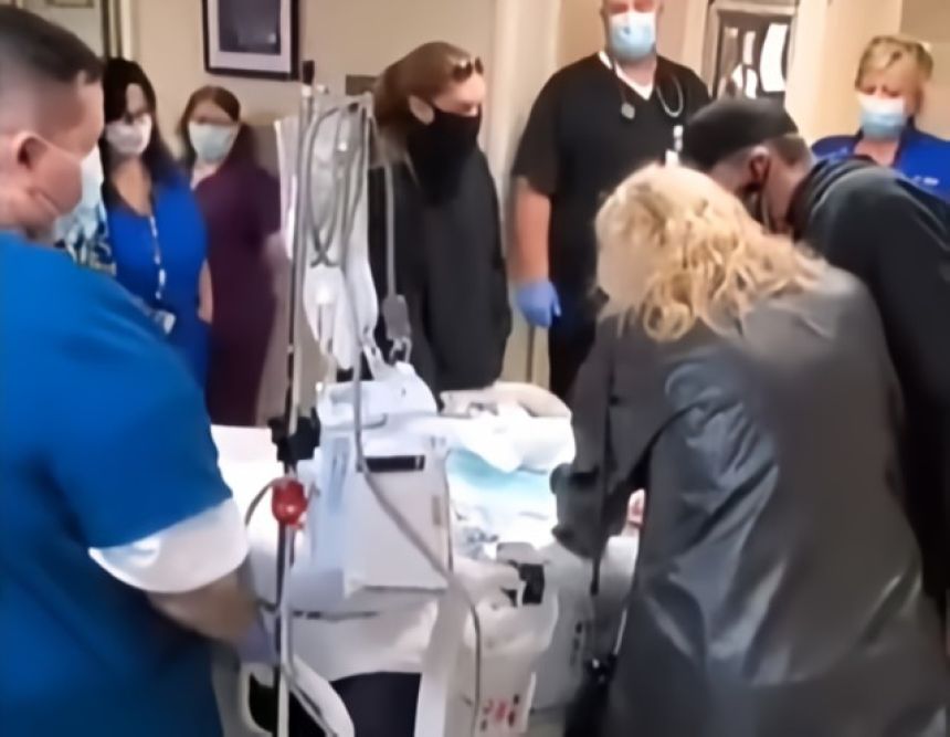 TJ さんの場合もこの儀式が行われた。両脇に並ぶ病院関係者らに見送られつつ、手術室の前で家族と最後の別れが行われた。