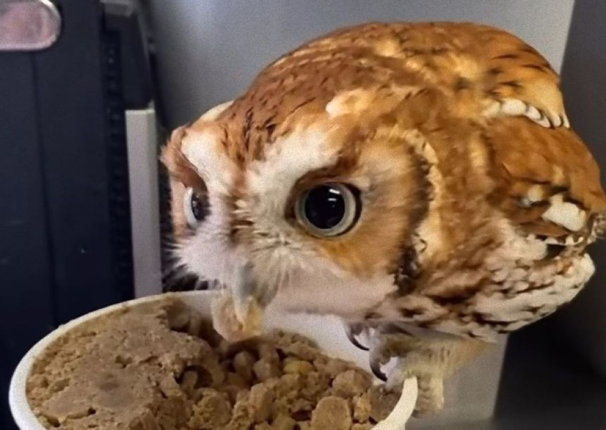 アメリカオオコノハズクは、体長が20~25cmの小型のフクロウで、野生下では食べられる大きさのものなら何でも捕食するプレデターだ。