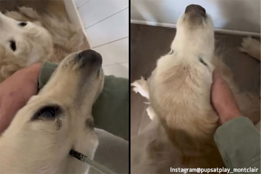 話題のわんんこはアメリカ、ニュージャージー州モントクレアにある犬の保育園(デイケア)の「パプス・アット・プレイ」に通うのゴールデンレトリバーのミオ(メス)とテオ(オス)だ。