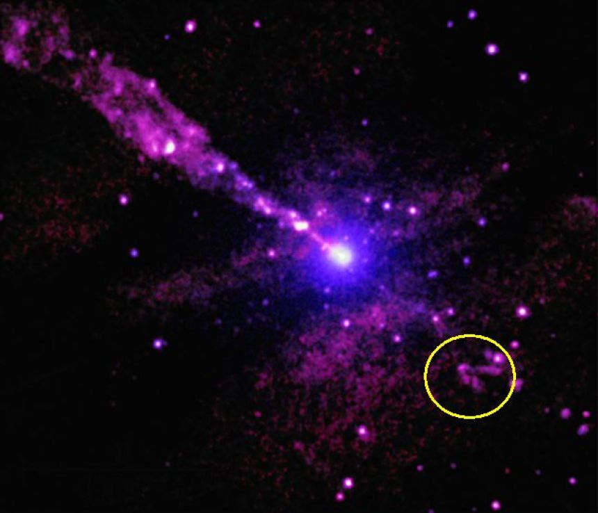 するとジェット内でガスの密度が高まり、それによってX線が放たれる。チャンドラがとらえたのは、それである可能性がある。