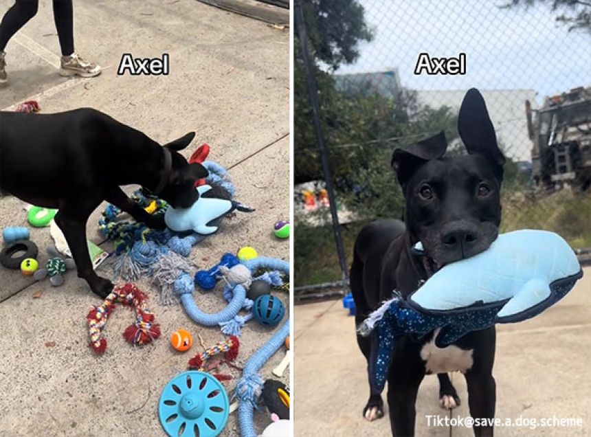 Save-A-Dog Schemeの保護犬たちは、スタッフと共におもちゃがある場所へと案内され、好きなおもちゃを1つずつ選んでいく。