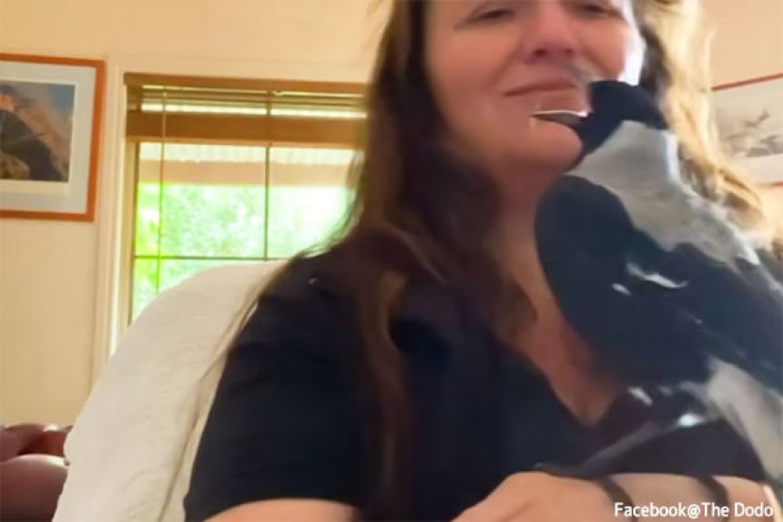 この画像を大きなサイズで見る女性とカササギフエガラスの間に芽生えた友情