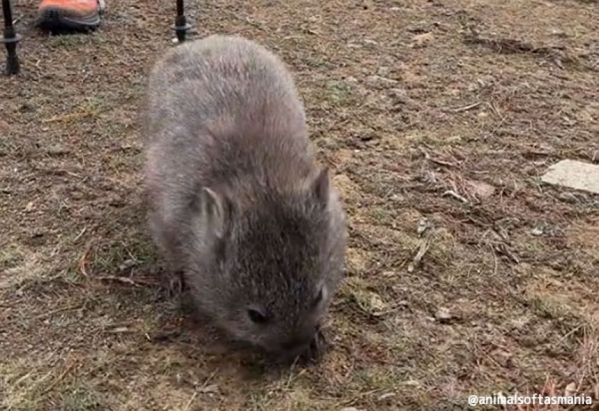 この画像を大きなサイズで見るオーストラリア、タスマニア州でハイキングをしていた女性に、スタスタと近づいてきたのは野生のウォンバットの子供だ。