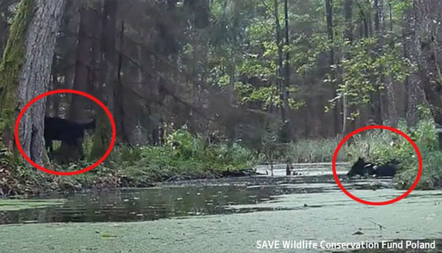ビーバーを記録するために設置された野生動物観察カメラに映ったのは、川を渡る黒いオオカミで、ポーランド国内で初めて撮影された貴重な瞬間だ。しかも2頭いた!
