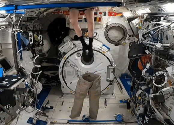これは地球では真似できない芸当で、宇宙空間ならではの日常生活を垣間見ることができる。