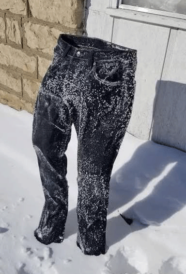 また、かつてネットで話題となった凍り付いたジーンズを引き合いに出し、「これを思い出したのはわたしだけではないずだ」の声も。