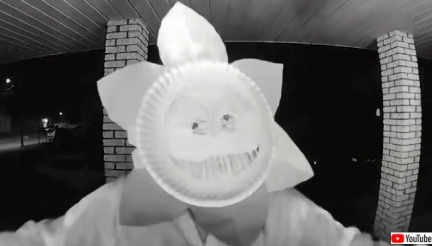 Ring社のドアベルのカメラに映し出されたのは、紙皿で作った手作りの仮面をかぶった謎の人物だった。