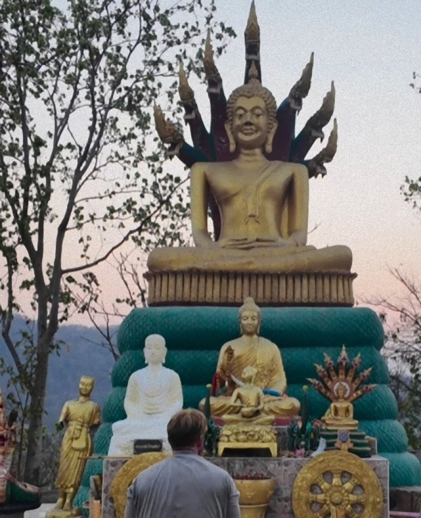 この画像を大きなサイズで見るそこでトラヴィスさんはソンジットさんと一緒に山頂に行き、仏像の前で瞑想し、祈りを捧げて夜を待った。