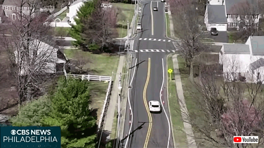 まるで錯視のような車線が登場したのはペンシルベニア州モンゴメリー郡の町にある一般道だ。そこは以前からスピードを出し過ぎる車が多く、危険であると住民たちも頭を悩ませていた。