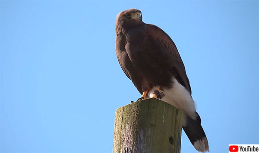 攻撃を繰り返していたのは、アメリカ南西部からチリ南部、アルゼンチン中央部に分布するモモアカノスリ。英名ではハリスホークという外来種で、本来イギリスには生息していないタカだ。