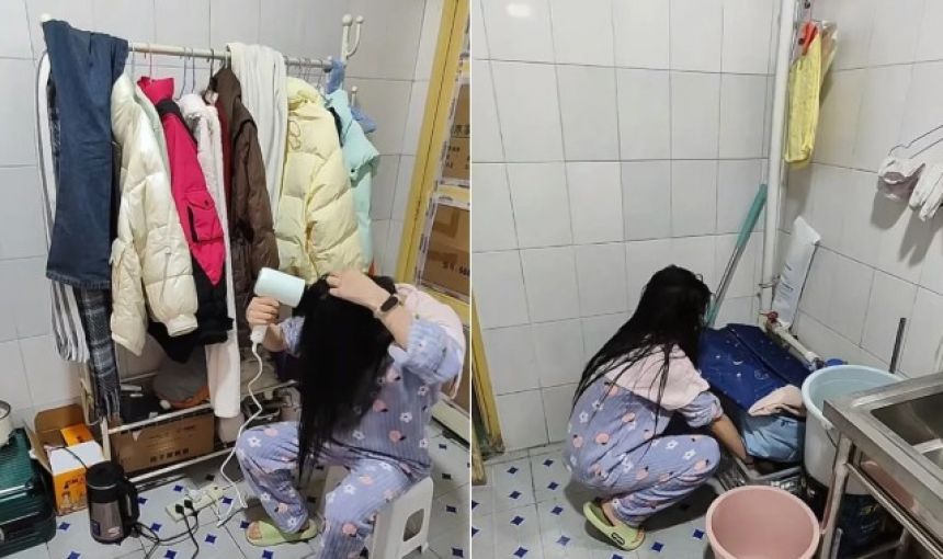 References: I live in a bathroom and pay $6 in rent — it’s where I cook, eat and sleep / 女子把公司厕所当“家” 月花30租下只为省钱
