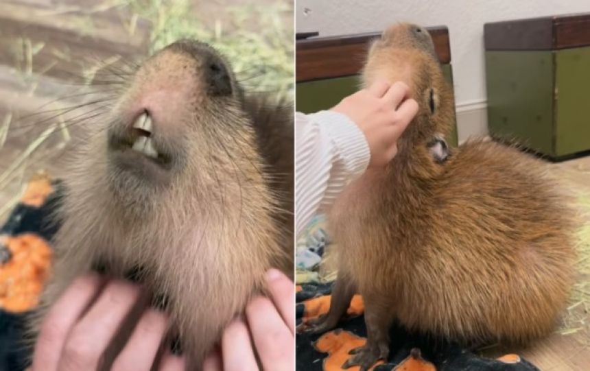 お客さんにモフられて昇天寸前のカピバラさん。