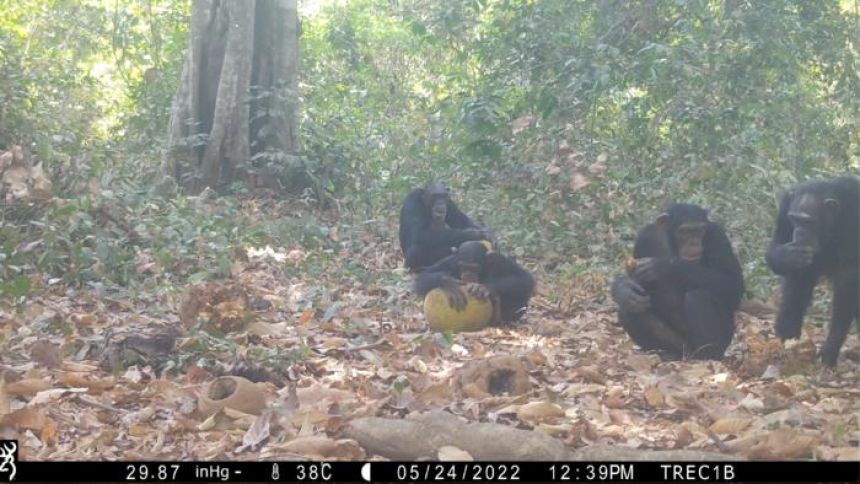 研究チームは2021年から2023年にかけて、自動カメラによる長期観察を実施。17頭のチンパンジーが、10回にわたって果実を摂取する様子を記録した。