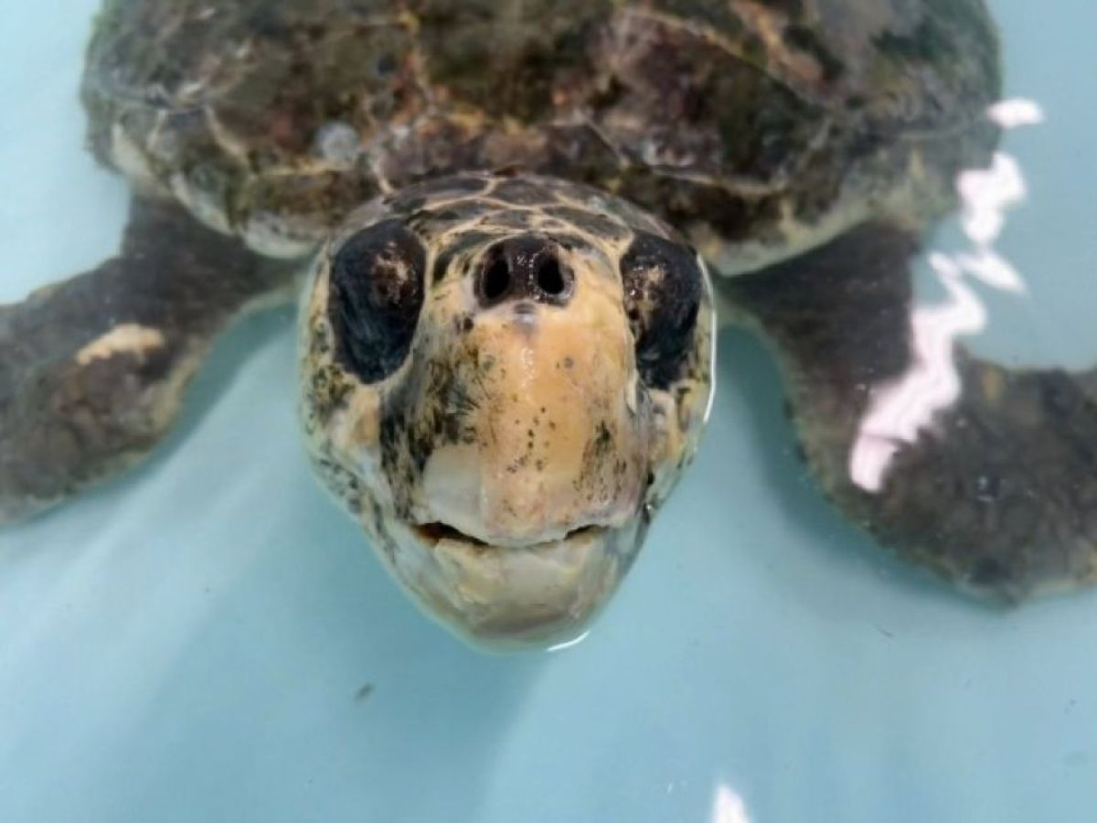 全身を藻やフジツボに覆われていたウミガメが保護される