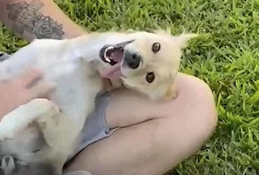 彼女は衰弱した犬を見つけた時、その姿に心を痛め、すぐに救助した。そしてその犬は見事に回復し、美しい本来の姿を取り戻した。この犬は、人間や他の動物にとてもフレンドリーなあの犬種だったのだ。