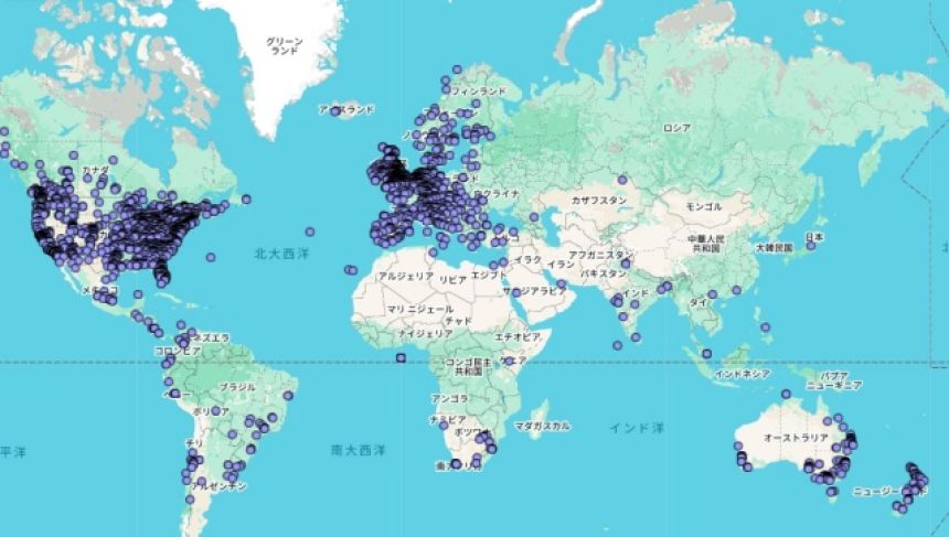 この画像を大きなサイズで見るこの地図によると、日本でも東京の八王子市あたりで一件報告があるようだが、大半はヨーロッパと北米に集中しているのがわかるだろう。