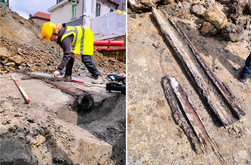 ルーヴェン市が実施していた道路の改修工事で掘削作業をしていた作業員らは、地中から長く丸い木の幹なようなものを発見し、すぐに考古学者に連絡した。