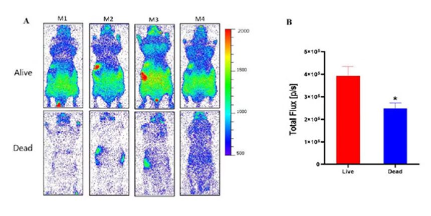 すると生きているマウスでは、はっきりとした光が確認された一方、死んだマウスではその光が急速に失われ、部分的にしか残らないことが明らかになった。