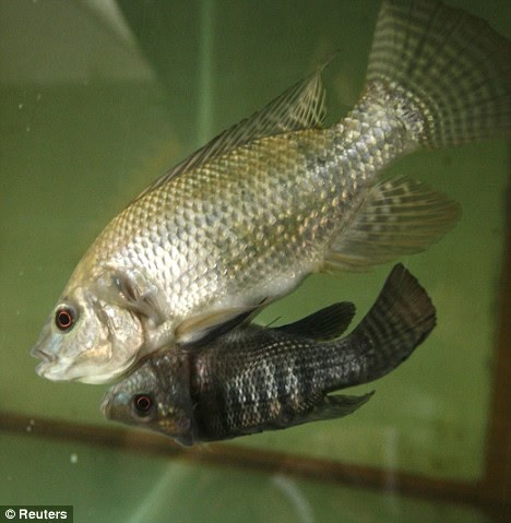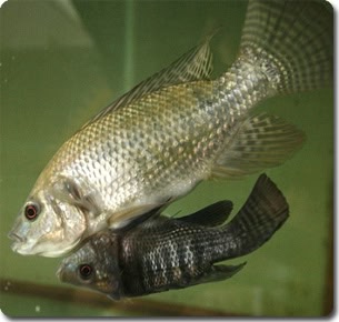 この魚たちはNile Tilapiaという種類の魚だそうで、熱帯川、運河、湖と池で見つかる一般の淡水種。成長すると体長60センチ、体重4キロ結構大型の魚なのだそうで、この兄弟魚はタイの水族館で生まれたのだそう。