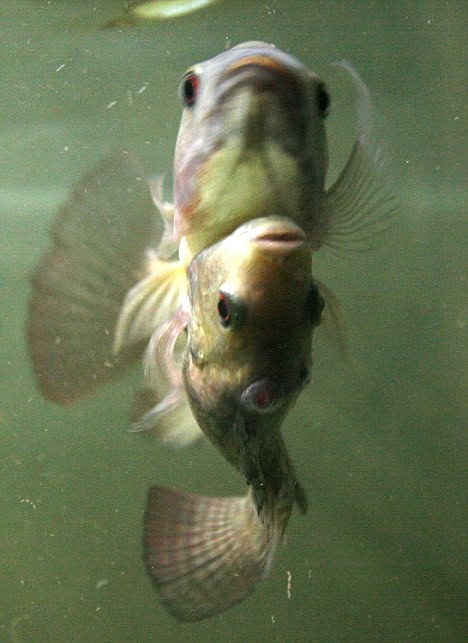 通常ならば、長生きはできないであろうシャム双生児として生まれた魚の兄弟。ところがこの兄弟たちは他の双生児とは一味違ったわけで、お腹が引っ付いたままもう8ヶ月も2匹とも元気に水の中で暮らしているというから、専門家たちもびっくり。どうやらこの体勢のまま生き抜く術を見つけたみたいなんだ。
