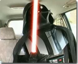 ちょっと前に紹介した、歯医者帰りのデビット君のタミフルヘブンな映像は、次から次へと亜種を産出し、今年のベストオブユーチューブに入りそうな勢いなわけなんだけれども、そんな中、ダースベーダー伯爵の場合にも、ヘブン状態に突入しちゃったみたいなんだ。ていうかライトセーバーまで持ち出す始末だし結構危険なんだ。