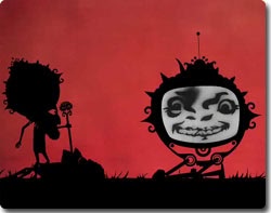 この画像を大きなサイズで見る切り絵タッチのアニメーションムービーは、お祈りを捧げていたある部族に空から降ってきたある物体により引き起こされた機械現象なんだ。