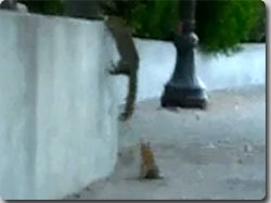 この画像を大きなサイズで見るおかあさんリスが、子どもの壁越え特訓中。「ほらこんな具合にこうやってこうやって・・・」なんども観察して試してみたけれど、そこには超えられない壁があったみたいなんだ。
