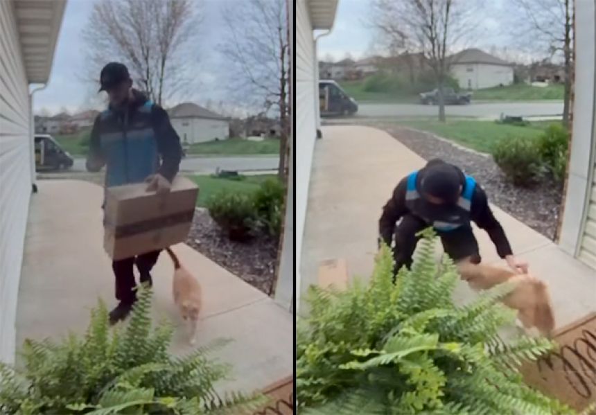 かわいい…人懐っこい茶トラさんも猫を誘導する配達員もかわいい