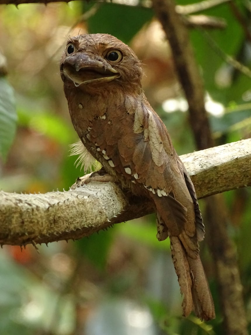 カエルと鳥のハイブリッド?カエル鳥?とも思えるファニーな顔立ちをしたガマグチヨタカには、住む地域によって種類がいろいろあるんだけれど、中でも一番愛くるしいのがスリランカに生息している、「スリランカ・ガマグチヨタカ」。