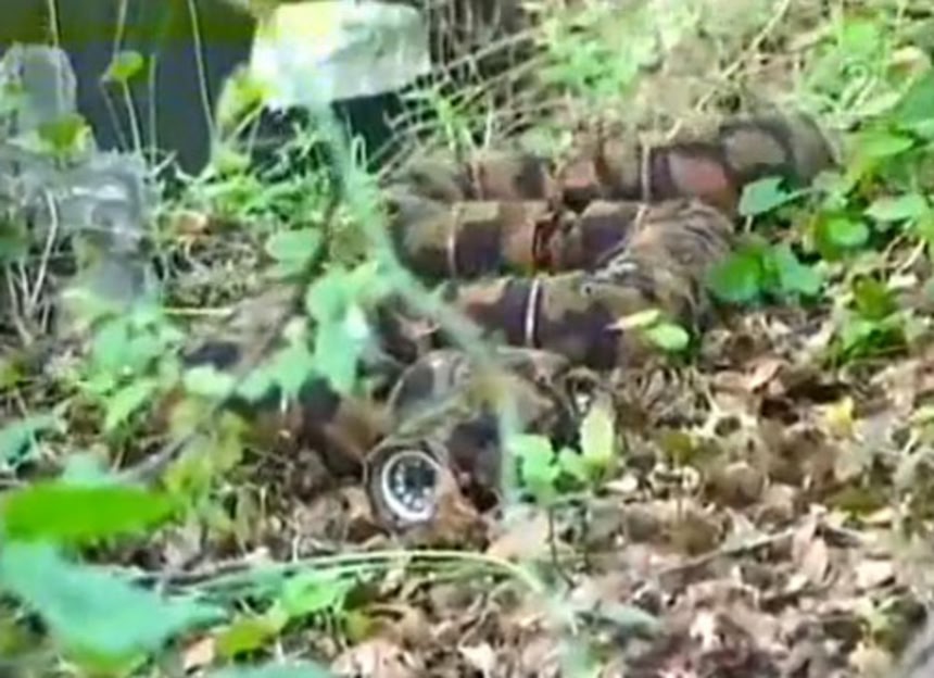 ノートブックパソコンにて遠隔制御しているこのヘビロボットは、トンネル、洞窟、建物の隙間などを、ヘビのように縦横無尽に動き回り、敵の動きをキャッチして、映像と音声をリアルタイムで見ることができるのだという。