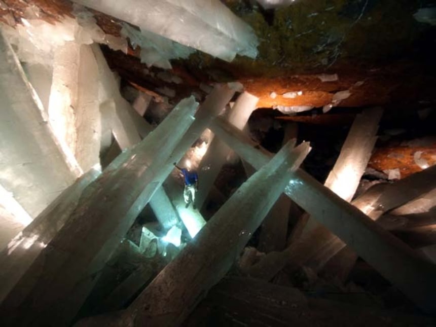 洞窟全体が結晶に埋め尽くされており、大きな結晶は長さ15メートルにも達するという。この結晶に囲まれた洞窟を発見した勇者たちは、サンチェス・ファンとペドロ兄弟。もともと発見されていた、ナイカ鉱山から新しいトンネルを掘り、結晶の洞窟を発見したのだと言う。