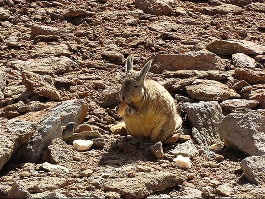 アンデスには不思議な生物達が生息しているのだそうで、どう見てもウサギにみえるこの生物は実はネズミで「ビスカッチャ」という動物。アンデスウサギとも呼ばれている。ビスカッチャは朝日が昇りはじめると、日光が当たるところにじっと座り込み、自らの身体を温める。こんな具合に日光浴を楽しむんだそうだ。