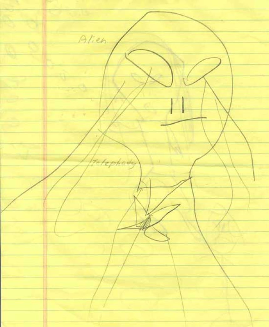 明らかにテレビ等の媒体で描かれているエイリアンすぎてテレビの影響を受けているのが見てわかる。