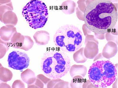 好中球は、強い殺菌・貪食能力を持ち、細菌などの体内の有害物を除去する役割があるんだそうだ。しかし、感染などの防御反応として生体に有利に働くだけでなく、場合によっては組織障害性にまで反応してしまうこともあるという。直径10~12μm。寿命は1~2日ほど。