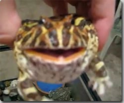 海外では「パックマンカエル」とも呼ばれているベルツノガエルのけたたましい鳴き声で目覚める朝とかあってもいいんじゃないかと思うんだ。音声ファイルをダウンロードして携帯の着信音なんかにもオススメなんだ。