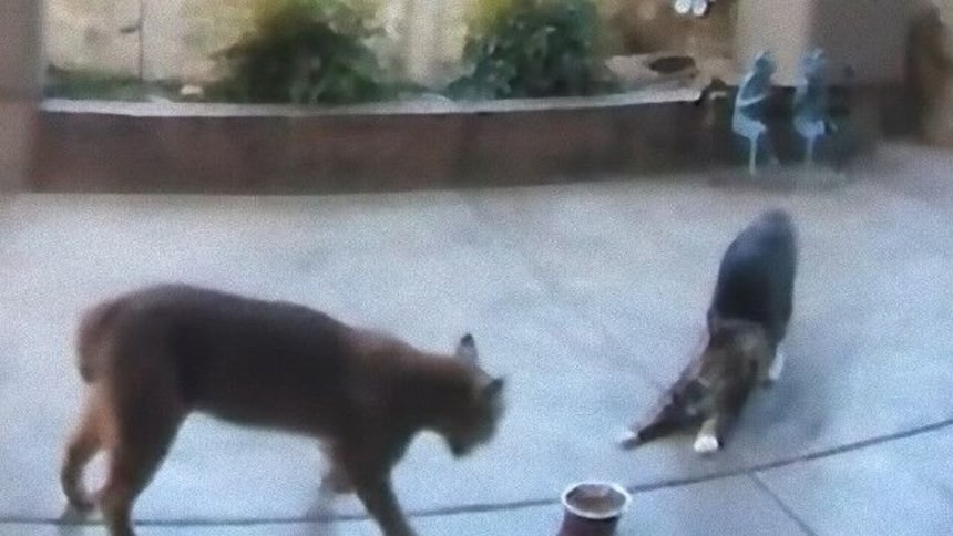 飼い猫のためにドアを開けていたらボブキャットが侵入