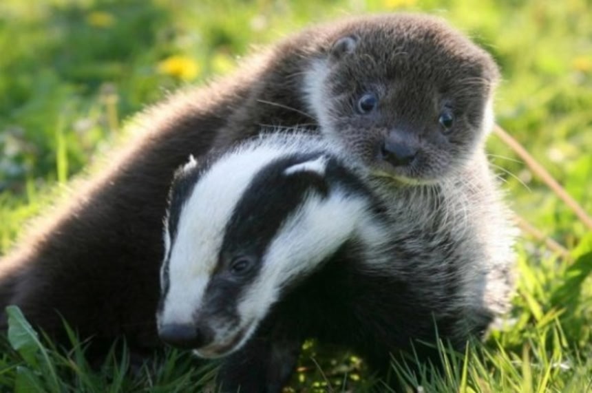 孤児となってここに運ばれてきたカワウソの子どもは、同じく孤児集団のアナグマたちと大の仲良しになったのだそうだ。