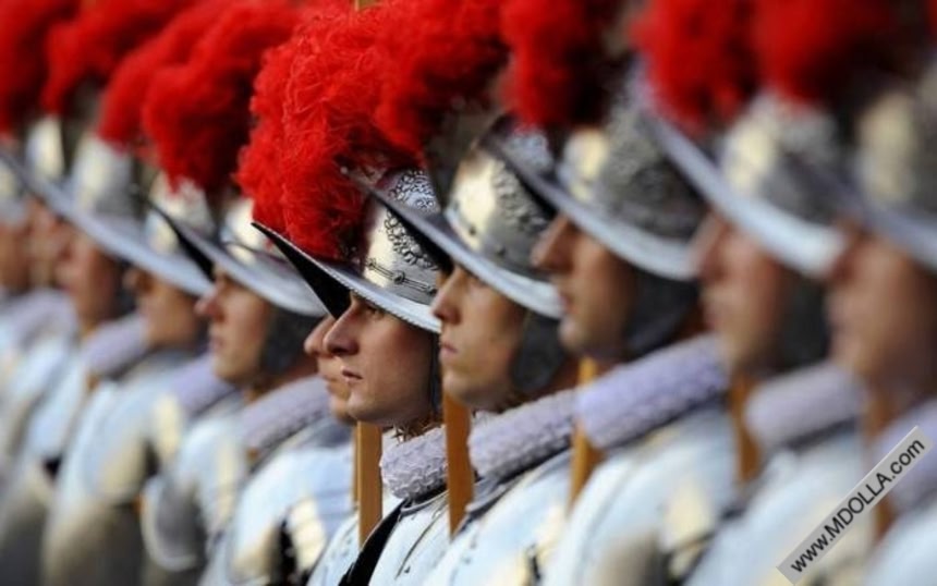 スイス人傭兵は宮殿の入り口とかの警護に当っているそうで、神聖ローマ皇帝カール5世の時、プロテスタントの軍隊がローマを荒らした際に、命を賭けて法王を守ったのがスイス傭兵だったことが今でもスイス人を傭兵に招く主な理由とされているんだ。