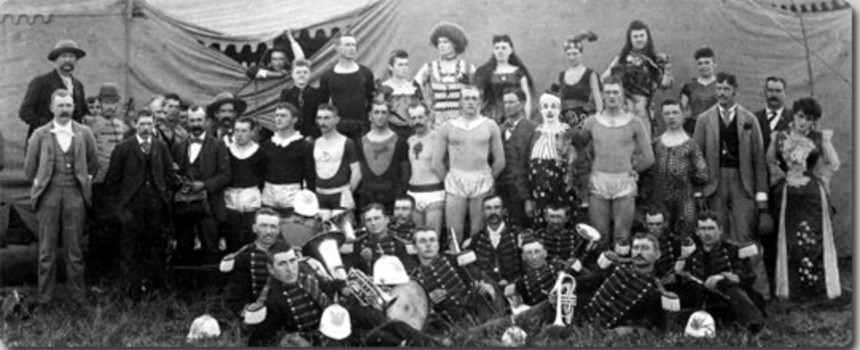 100年以上も昔に、アメリカで巡業を行っていたサーカス団たちの古写真。サーカスの歴史は古く、古代エジプト時代に始まり、ローマ時代にその原型がなされたと言われているんだ。近代サーカスの原点は1770年のイギリス「アストリー・ローヤル演芸劇場」が築いたとされていて、日本にはじめてサーカスが訪れたのは1864年。「アメリカ・リズリー・サーカス」により横浜で興行されたという。