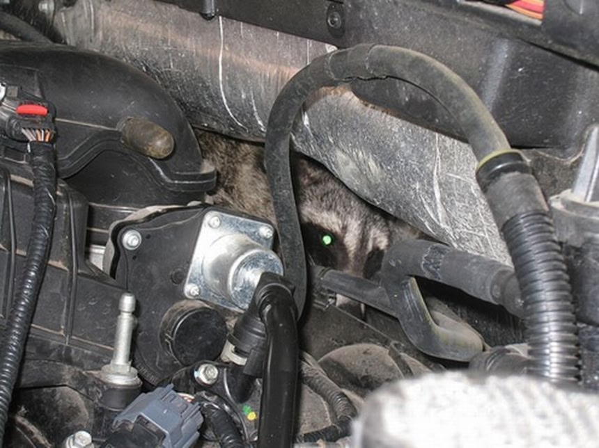 ぬくぬくあったかい場所なのを嗅ぎつけた動物たちが、温泉代わりによく利用しているのが車のボンネットの中なんだそうで、こんな動物たちがついうっかり見つかっちゃったわけなんだ。