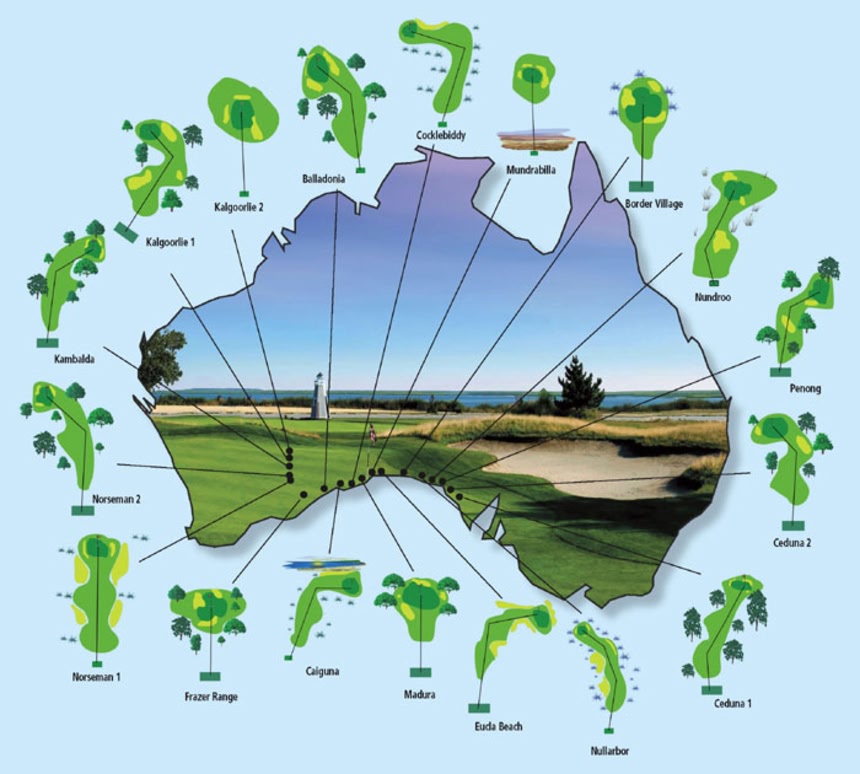 このゴルフ場は、18ホールが2つの州にまたがって点在し、パーは72。隣のホールまでの移動に最長2時間半かかるとされ、1ラウンドに1週間かかるという。全長は848マイル(約1365キロ)。豪南部と西部をつなぐ幹線道路エアハイウエーに沿って作られており、最初のトーナメントが10月22日に予定されているそうだ。