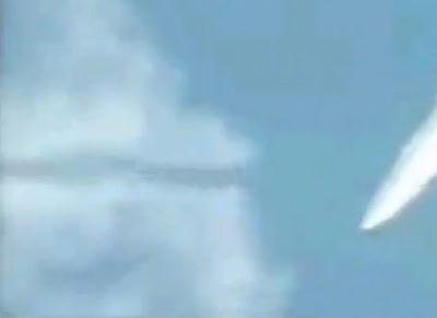 10月6日、イランのミサイル打ち上げのニュース映像で確認された未確認飛行物体。目をこらしてよく見て欲しいのは、画面左側の雲の部分。雲の右側からすっと入ったその物体は、雲を横切り消えていったんだ。