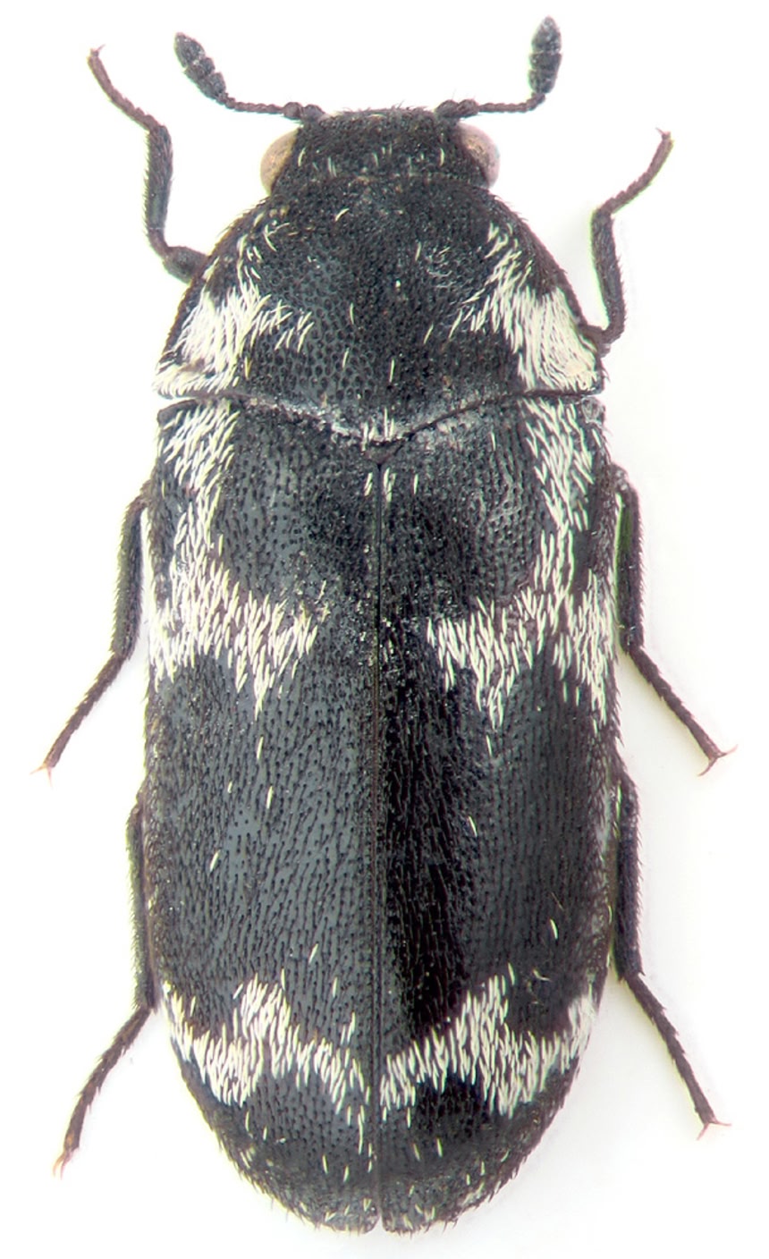 また、繊維質を食い荒らすばかりでなく、食品もエサとしているようで、乾物類、粉製品、乾麺などにもたかり、特にカツオブシや煮干しなどを好むことから「カツオブシムシ」の名が付いたそうなんだ。