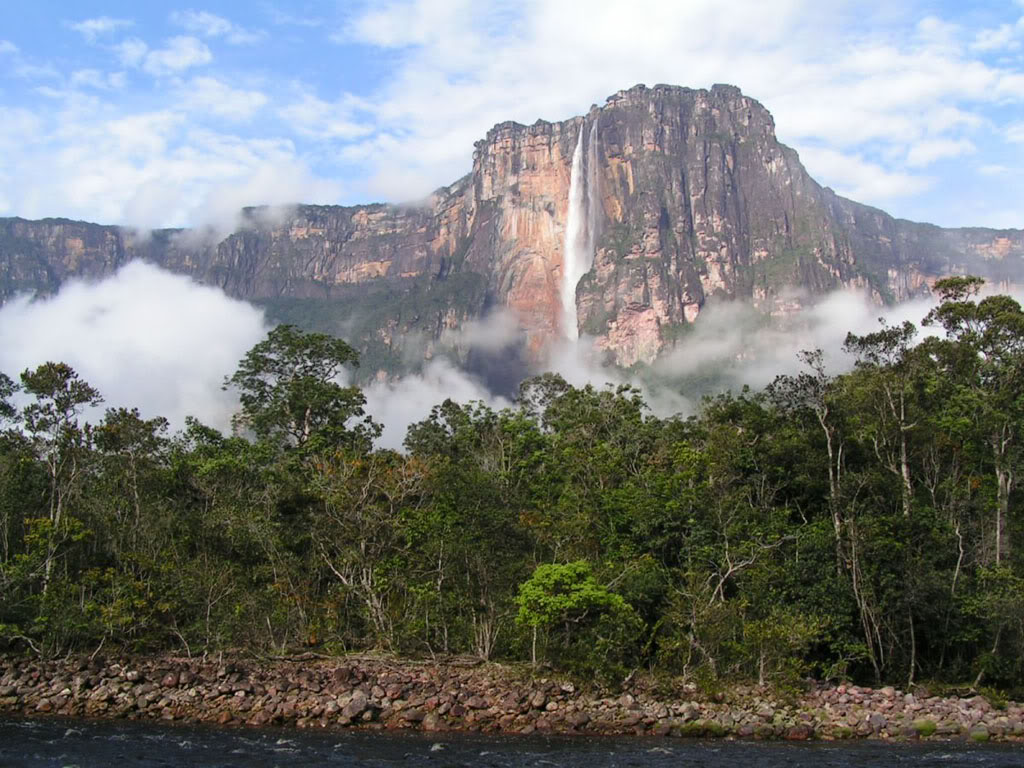 ギアナ高地にある最大のテーブルマウンテン、アウヤンテプイから流れ落ちるその滝は、落差がありすぎる為、滝下部では水が拡散してしまい、滝壺が無いのだそうだ。